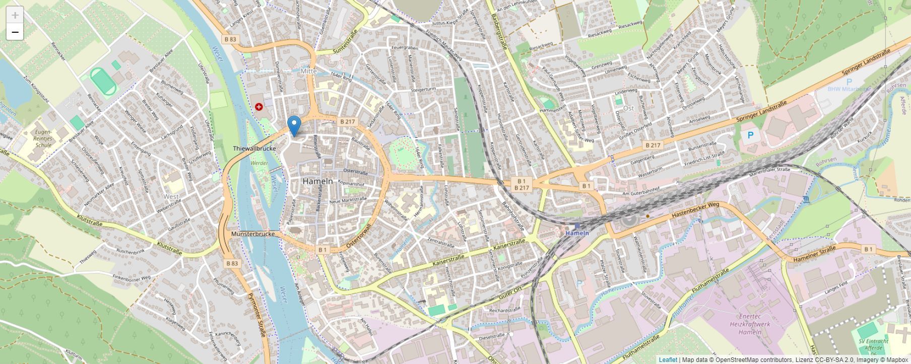 Die Immobilie selbst liegt im Zentrum von Hameln, in der Nähe der Fußgängerzone direkt gegenüber der Ausfahrt des Parkhauses der Stadtgalerie.