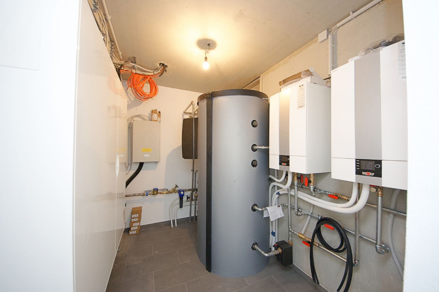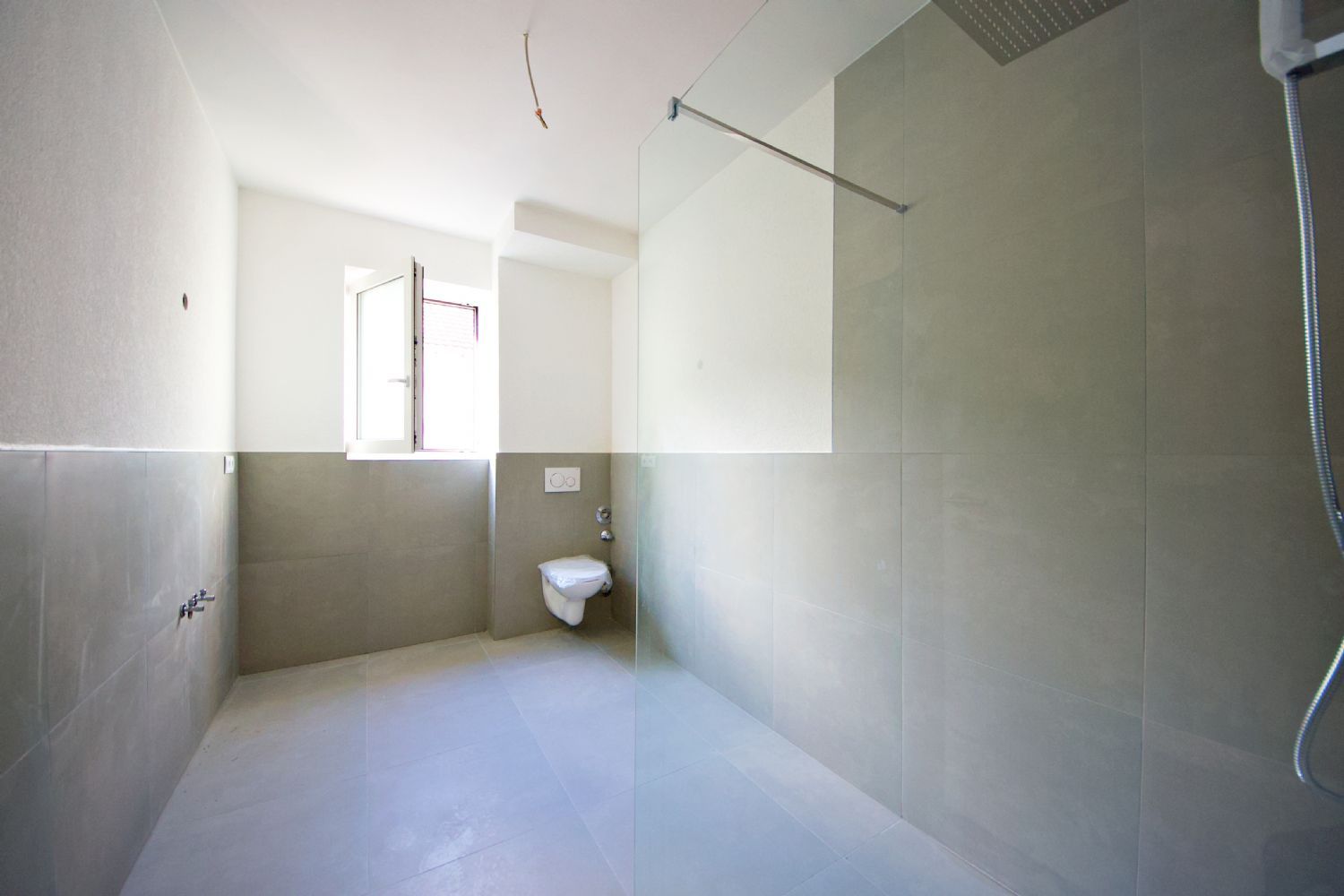 - Fertige Sanitärinstallation (WCs, Duschsäulen mit Regendusche, Wasserventile, Wasserzähler warm/kalt in jeder Wohnung)