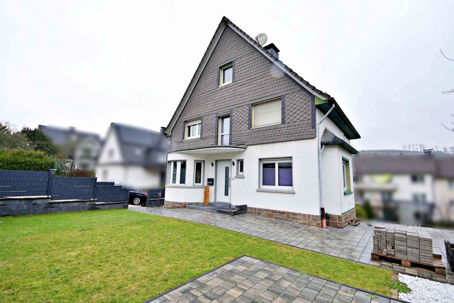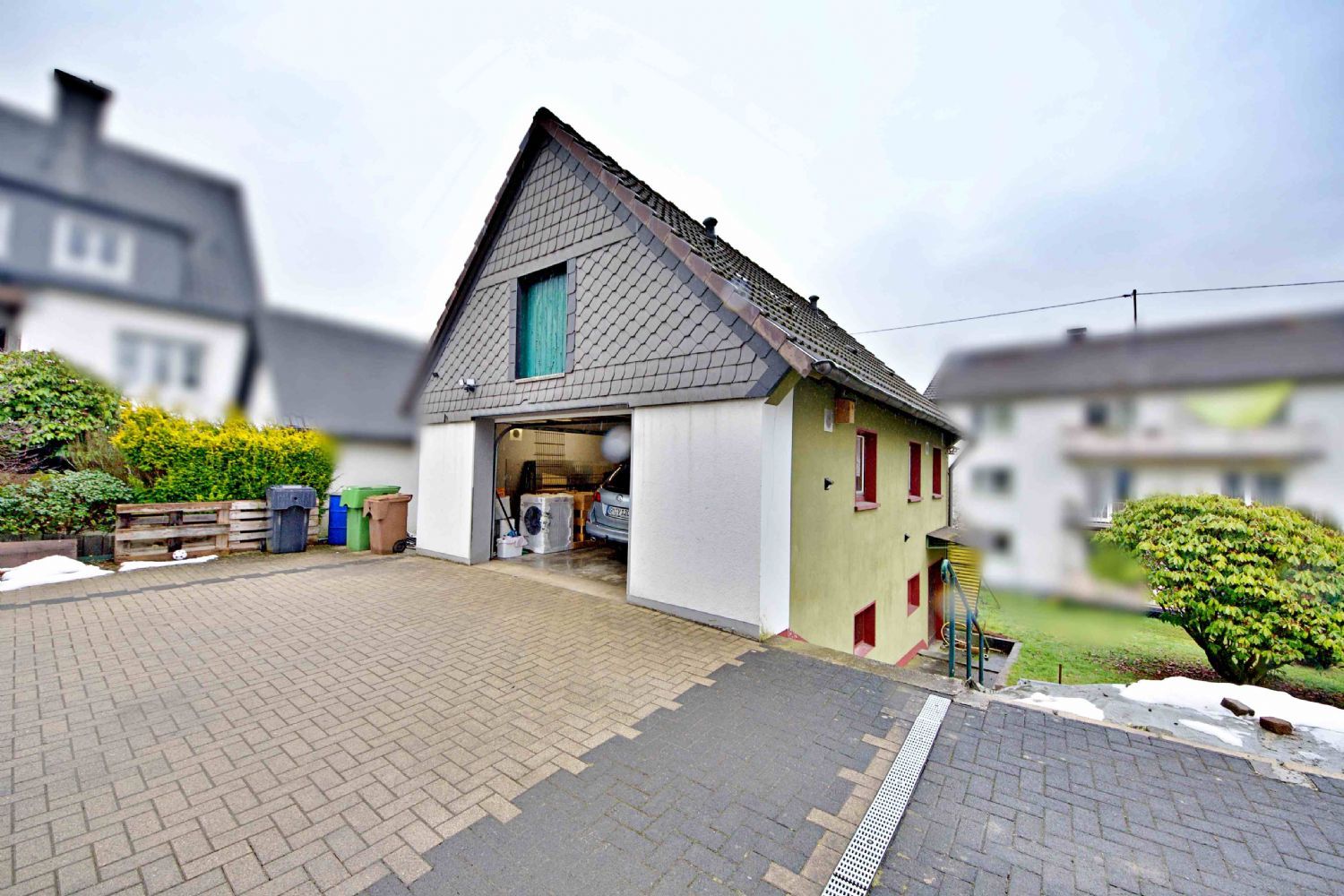 Neben der großen Garage stehen bis zu fünf weitere Stellplätze zur Verfügung – ein echtes Plus für Familien, Besucher oder mehrere Fahrzeuge.