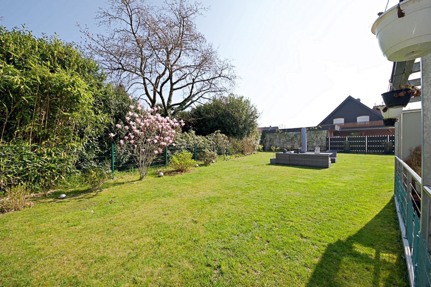 Der weitläufige Garten bildet eine grüne Oase der Ruhe und Erholung.
