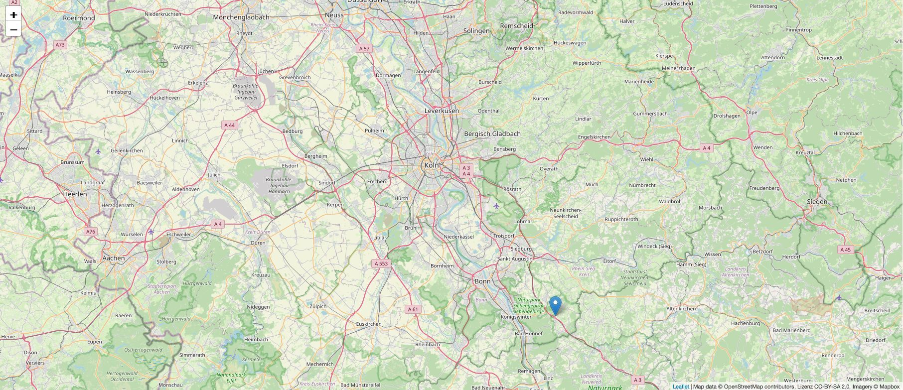 Den Anschluss an der A3 erreichen Sie in ca. 2 Fahrminuten. Der Kölner Hauptbahnhof ist ca. 40 Autominuten entfernt. In der Bonner City sind Sie in ca. 30 Minuten.