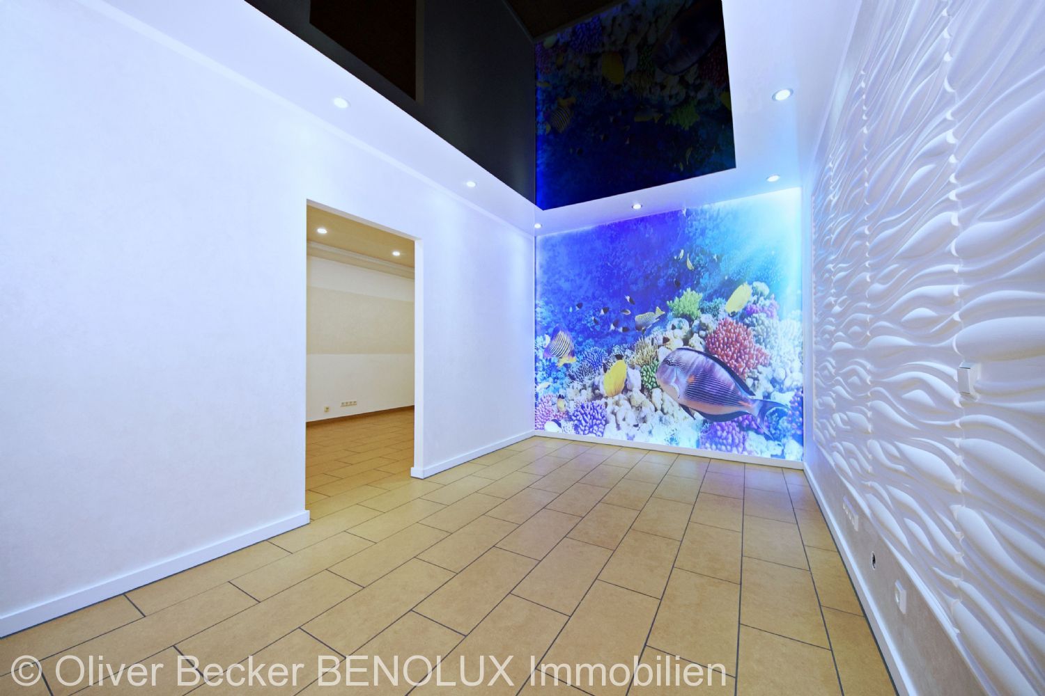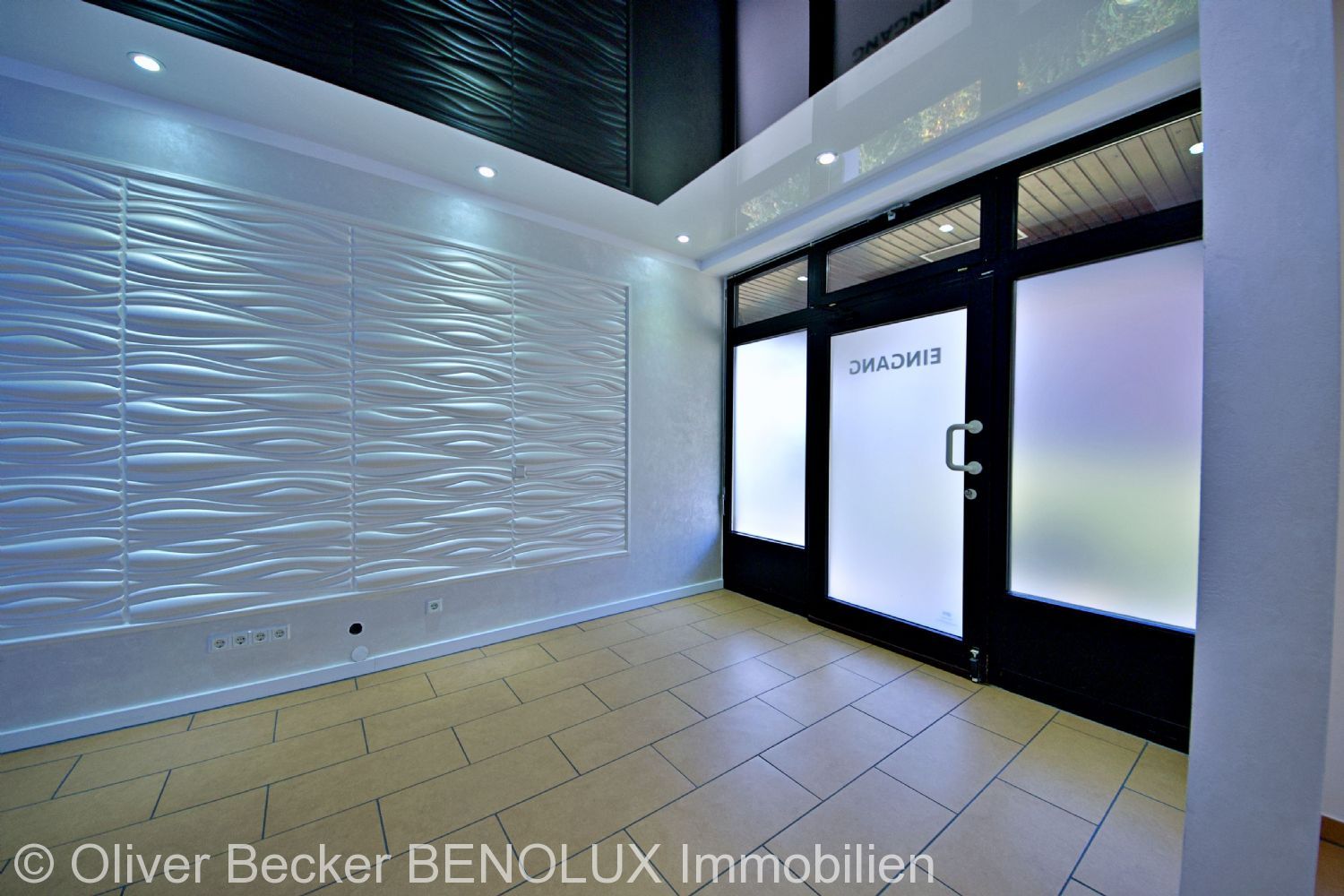 Diese Gewerbeeinheit liegt im Erdgeschoss eines Mehrfamilienhauses und verfügt über eine Gesamtfläche von ca. 50 m², die sich wie folgt aufteilt: Über eine große, von beiden Seiten durch bodentiefe Fenster flankierte Eingangstür betritt man einen hellen und modern gestalteten Empfangsbereich, der durch eine abgehängte Spanndecke einen positiven Wow-Effekt liefert. Linker Hand gelangt man in einen weiteren Büroraum, der Platz für mindestens zwei Arbeitsplätze bietet und ebenfalls über eine interessante Deckengestaltung verfügt. Außerdem haben wir in dieser Einheit eine Teeküche und eine unterteilte Toilette mit Handwaschbecken und WC. Ein großer, ca. 16 m² gemauerter Kellerraum und 2 PKW-Stellplätze runden diese Einheit ab.