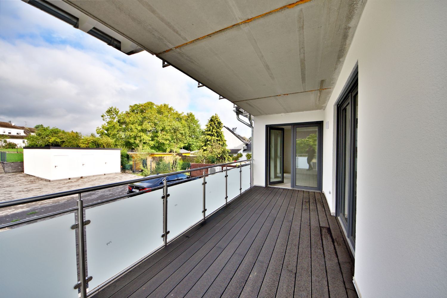 - Balkongeländer aus Edelstahl mit satiniertem Glas