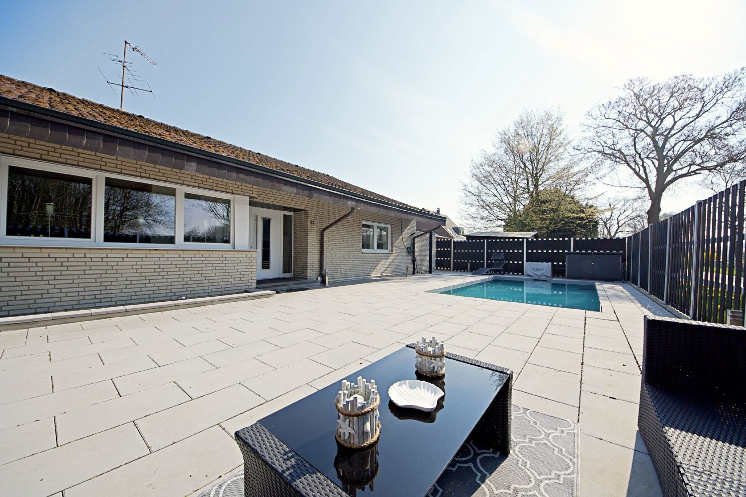 Der vorhandene Außenpool sorgt für ein besonderes Wohngefühl und macht den Außenbereich zu einem privaten Rückzugsort mit hohem Freizeitwert.